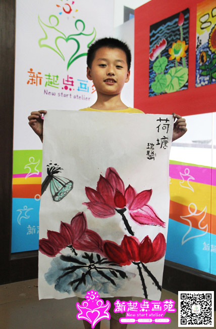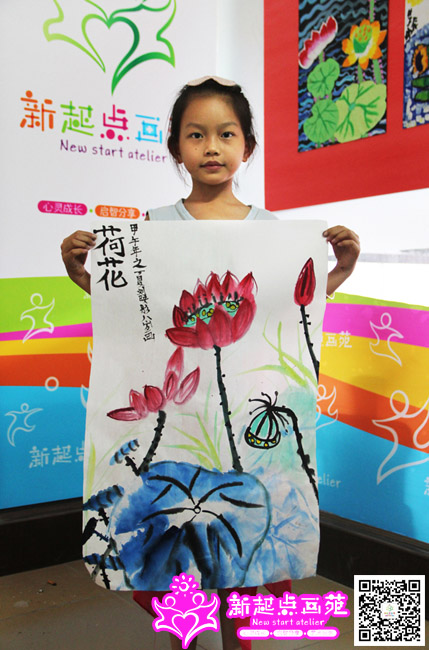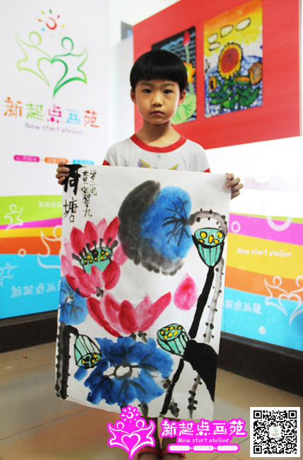 周末孩子们画的荷花