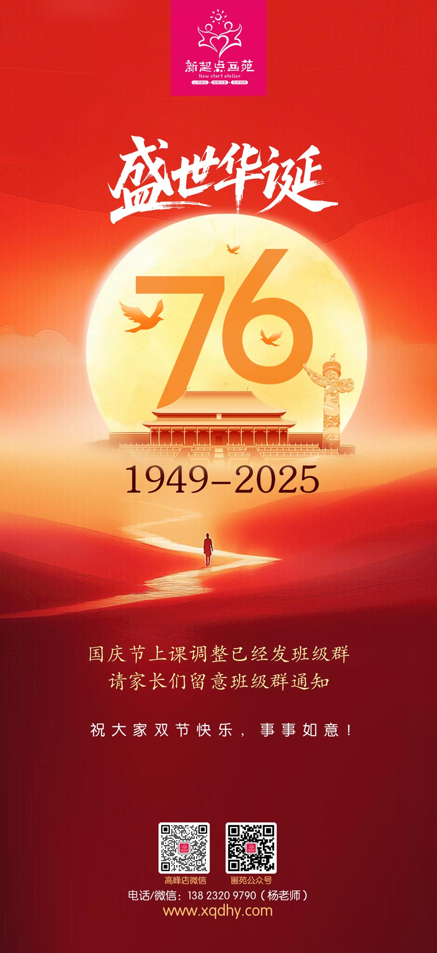 国庆期间上课安排已经发班级群了,请家长们留意班级群上课通知,祝大家双节快乐,事事如意!