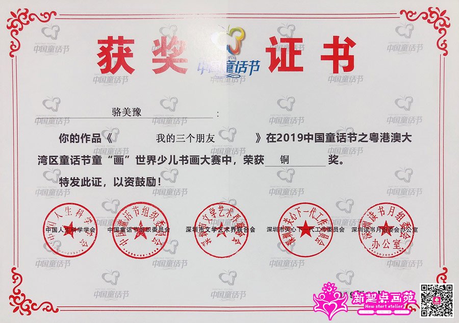 ▲ 2019年中国童话节之粤港澳大湾区童话节童“画”世界少儿书画大赛 - 证书、作品